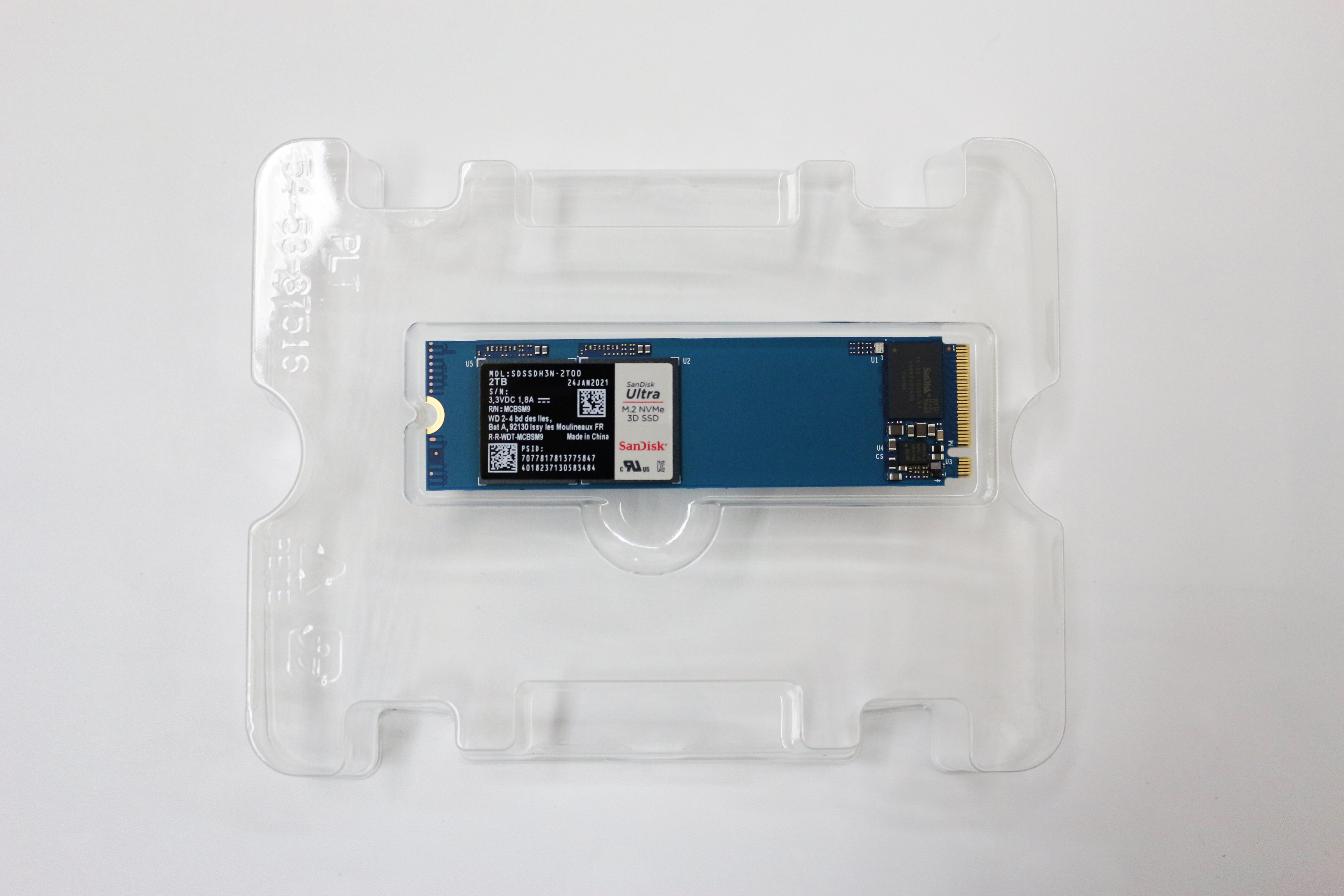 박스 전면입니다. 왼쪽에 SanDisk Ultra M.2 NVMe 3D SSD라는 제품명이 크게 표기되어 있습니다.