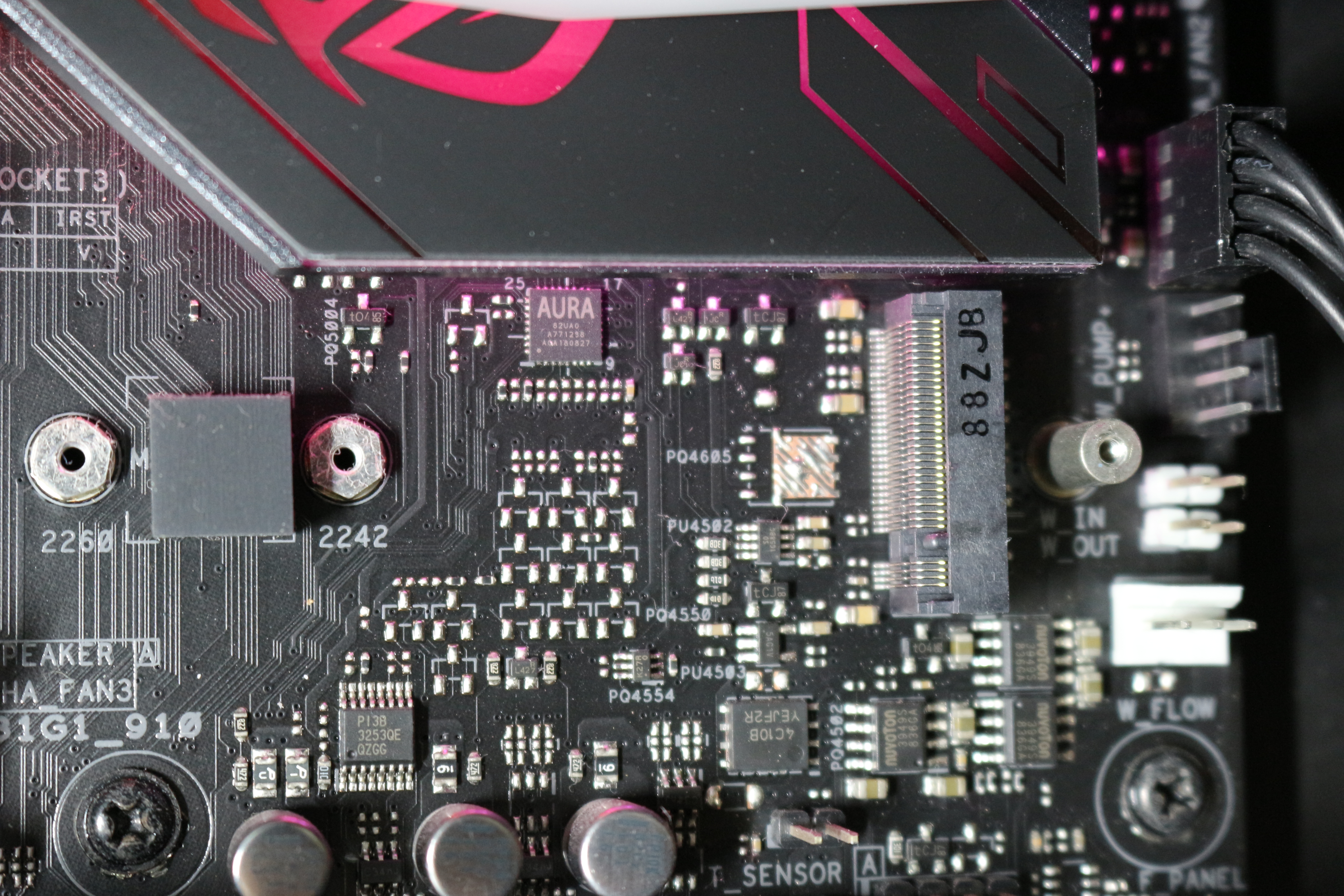 방열판을 빼면 이렇게 M.2를 꽂을 수 있는 슬롯이 보입니다.