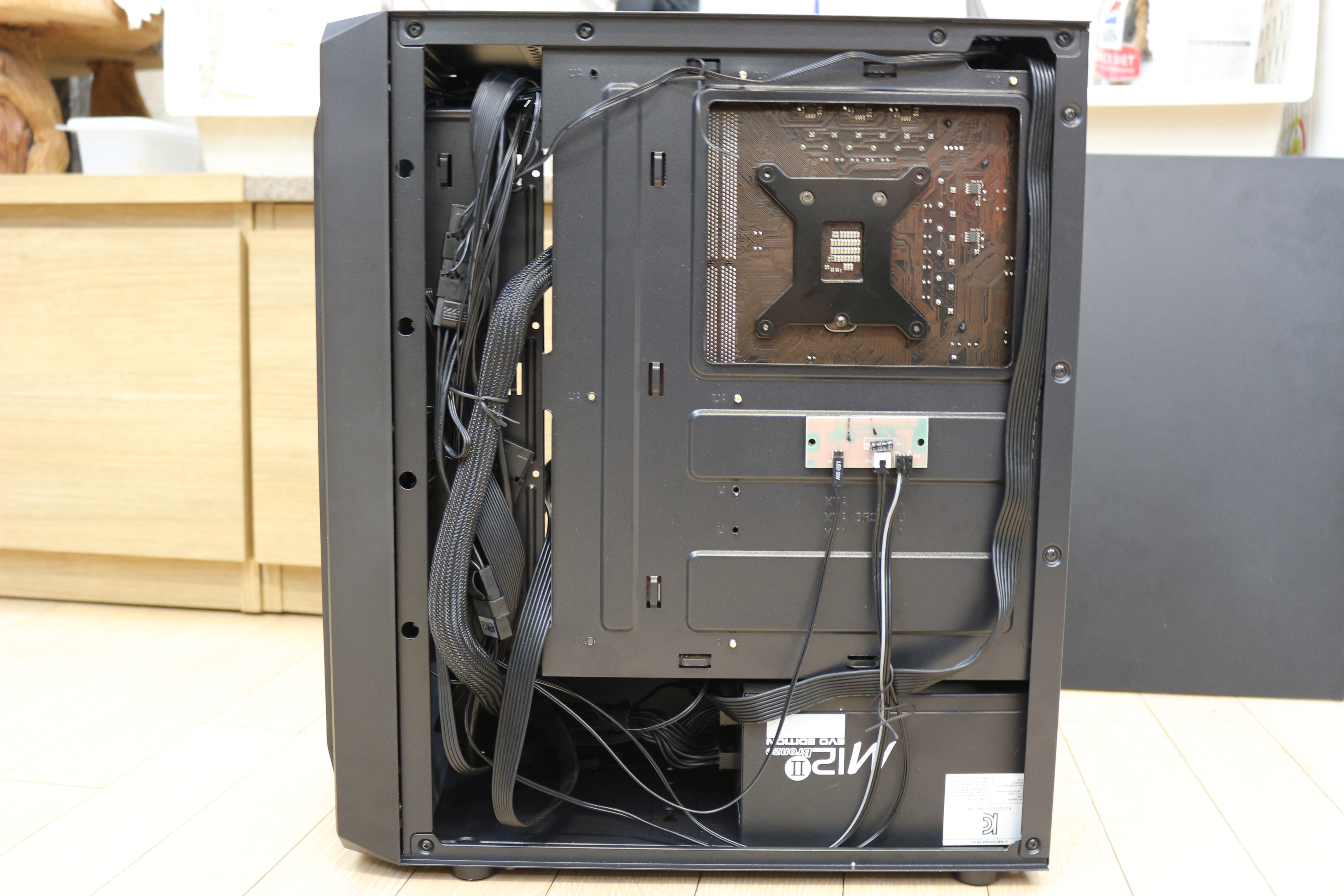 선정리 공간은 그다지 넓지 않습니다만 직접 조립해보고나니 케이스가 작아서 그런지 의외로 선정리는 간단했습니다. 조금은 허접해 보이는 기판이 하나 있는데요, 전면과 후면 팬의 LED, 그리고 팬의 전원 공급을 위한 부분입니다. 이 덕에 no.3 플러스에서는 기존 no.3와 다르게 LED를 ON/OFF할 수 있는 기능이 생겼습니다.