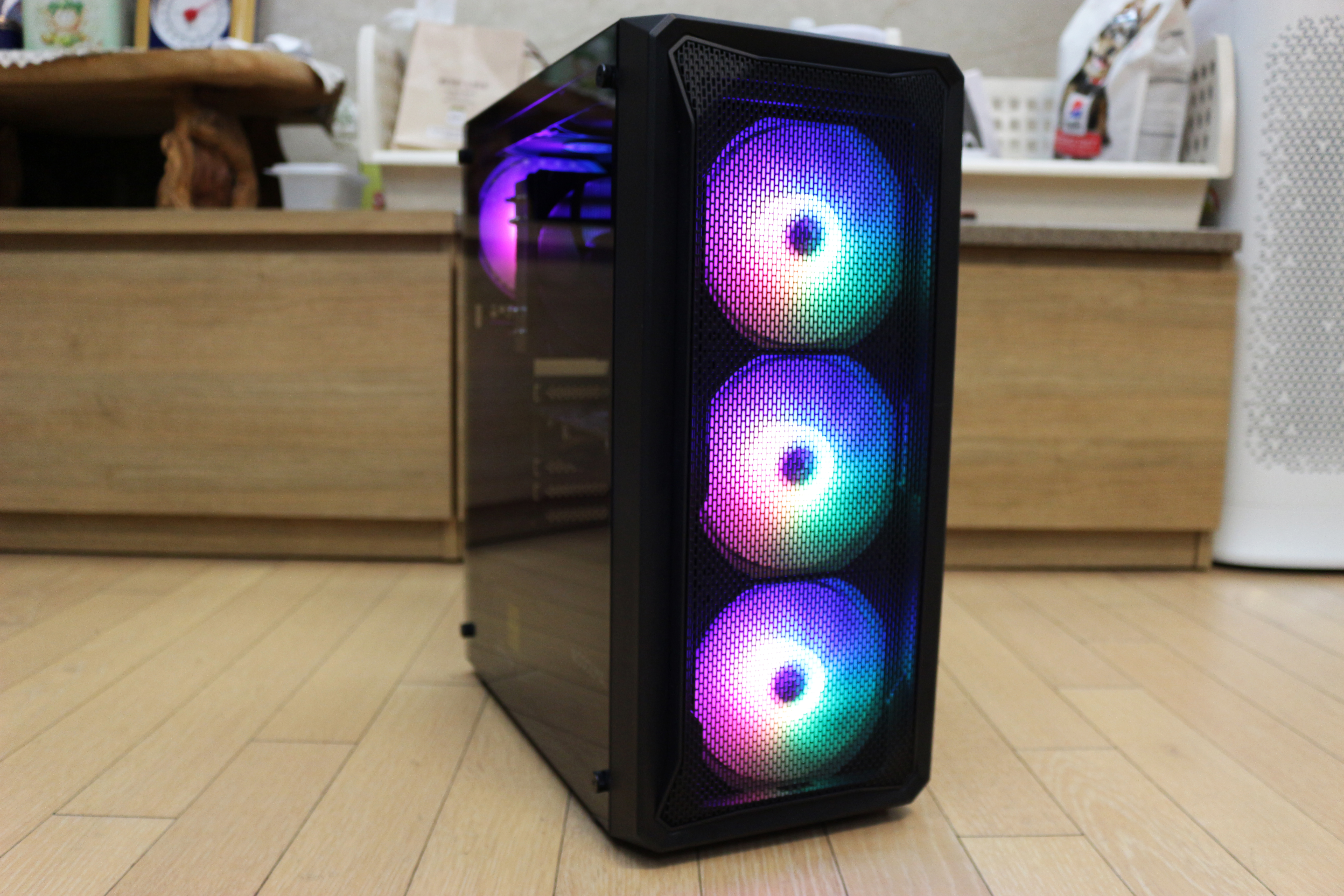 제가 가장 아쉬웠던건 조립의 불편함이였는데요, ATX 지원이지만 ATX 메인보드 장착이 너무나 어렵고 탈거는 더더욱 어려웠습니다. CPU 보조전원을 빼는게 힘들었기에 M-ATX나 ITX 또한 장착은 어렵지 않더라도 메인보드를 빼는데 어려움이 있을거라 예상됩니다. 초보분들이 찾을만한 가성비 케이스인데, ATX보드 조립과 분해가 어렵다는 점이 정말정말 아쉬워요. 그리고 팬의 LED가 고정형 RGB인점 또한 아쉬움이 남네요.