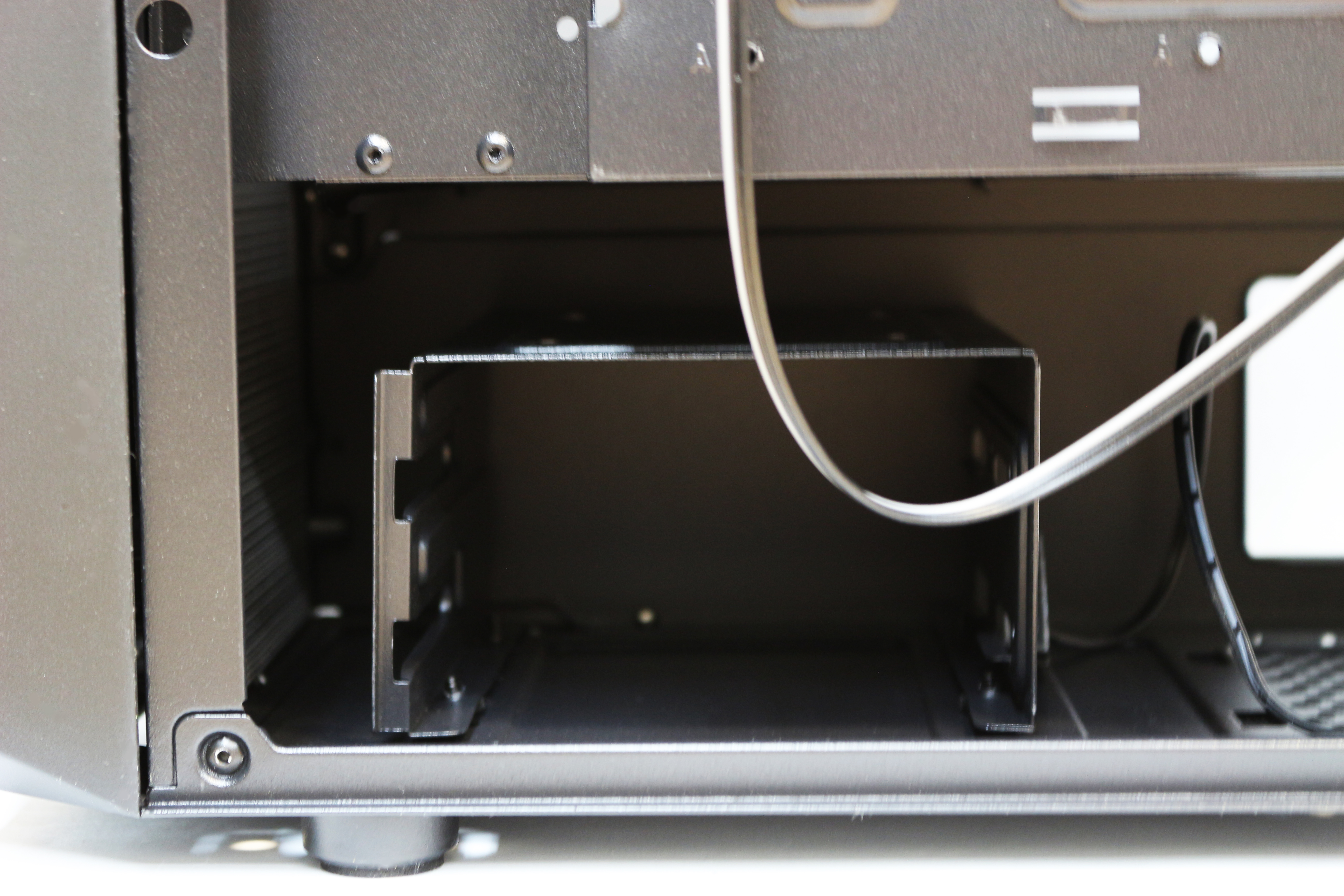 하단부분입니다. 파워가 들어갈 공간은 좁은 편입니다. 모듈러 제품을 쓰신다면 조립이 조금 불편하실 듯 합니다. 그 이유는 HDD 베이 때문인데요, 탈착이 가능해서 베이 탈거->파워 조립->베이 장착 순으로 하면 문제는 없을 것 같습니다.