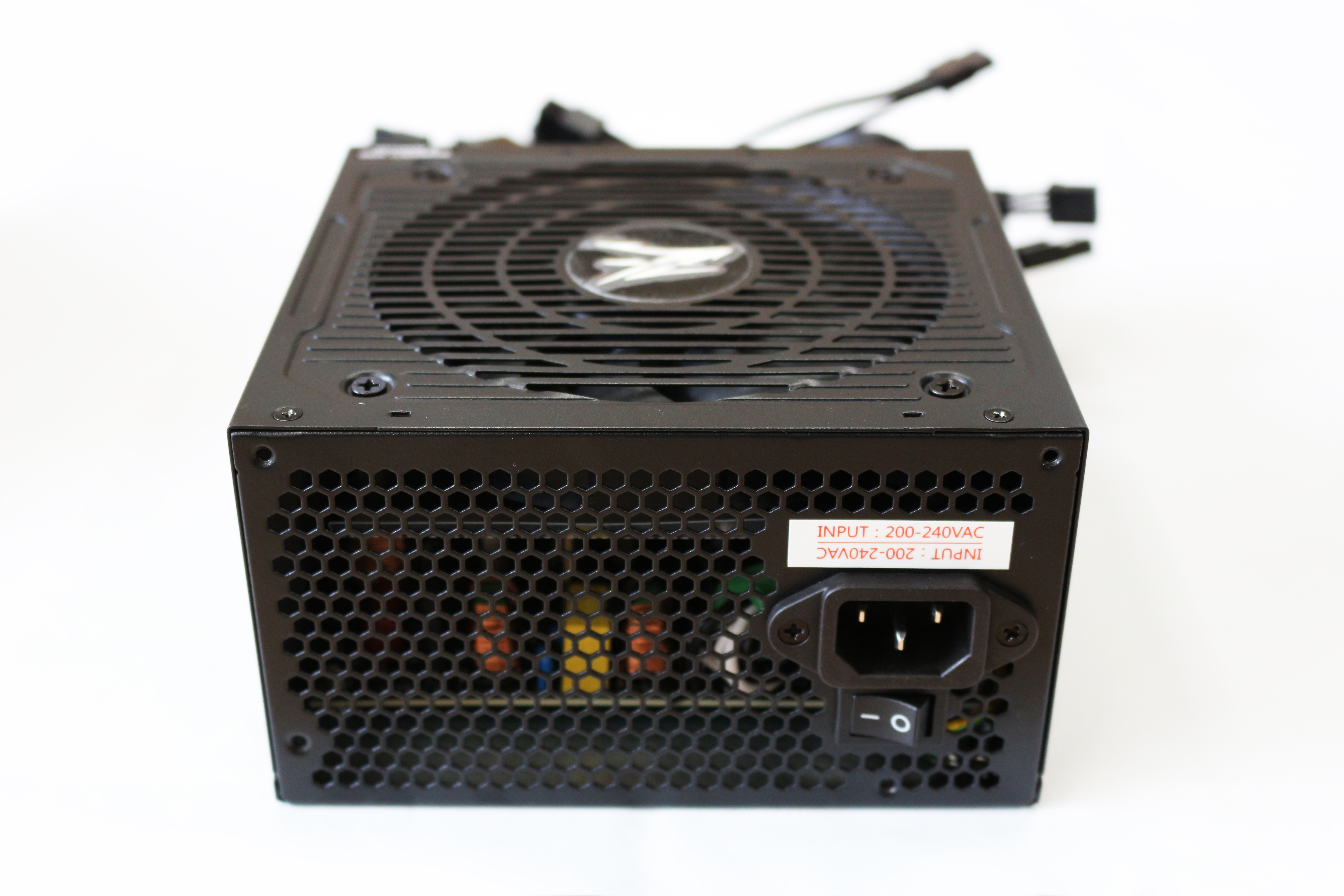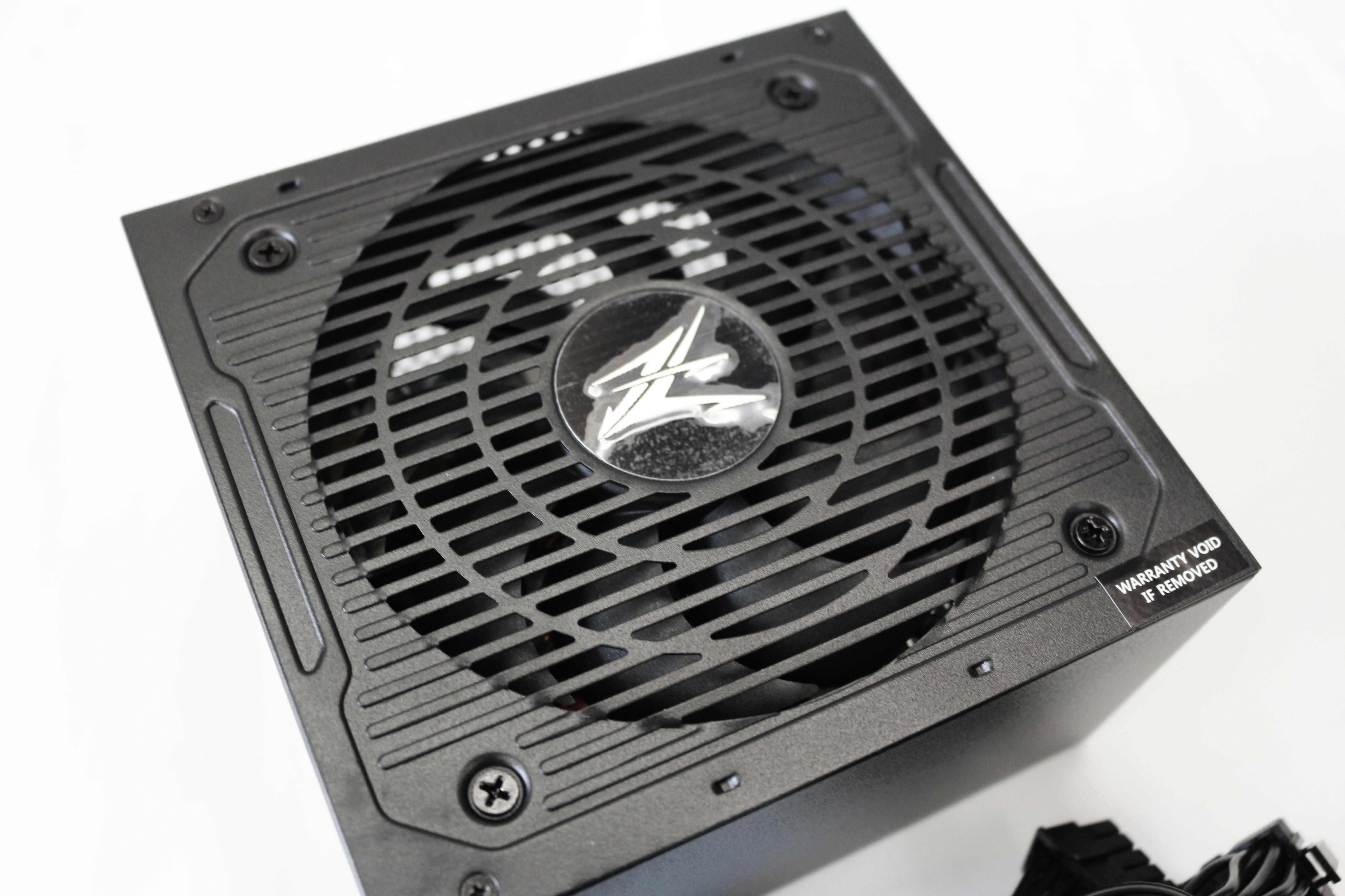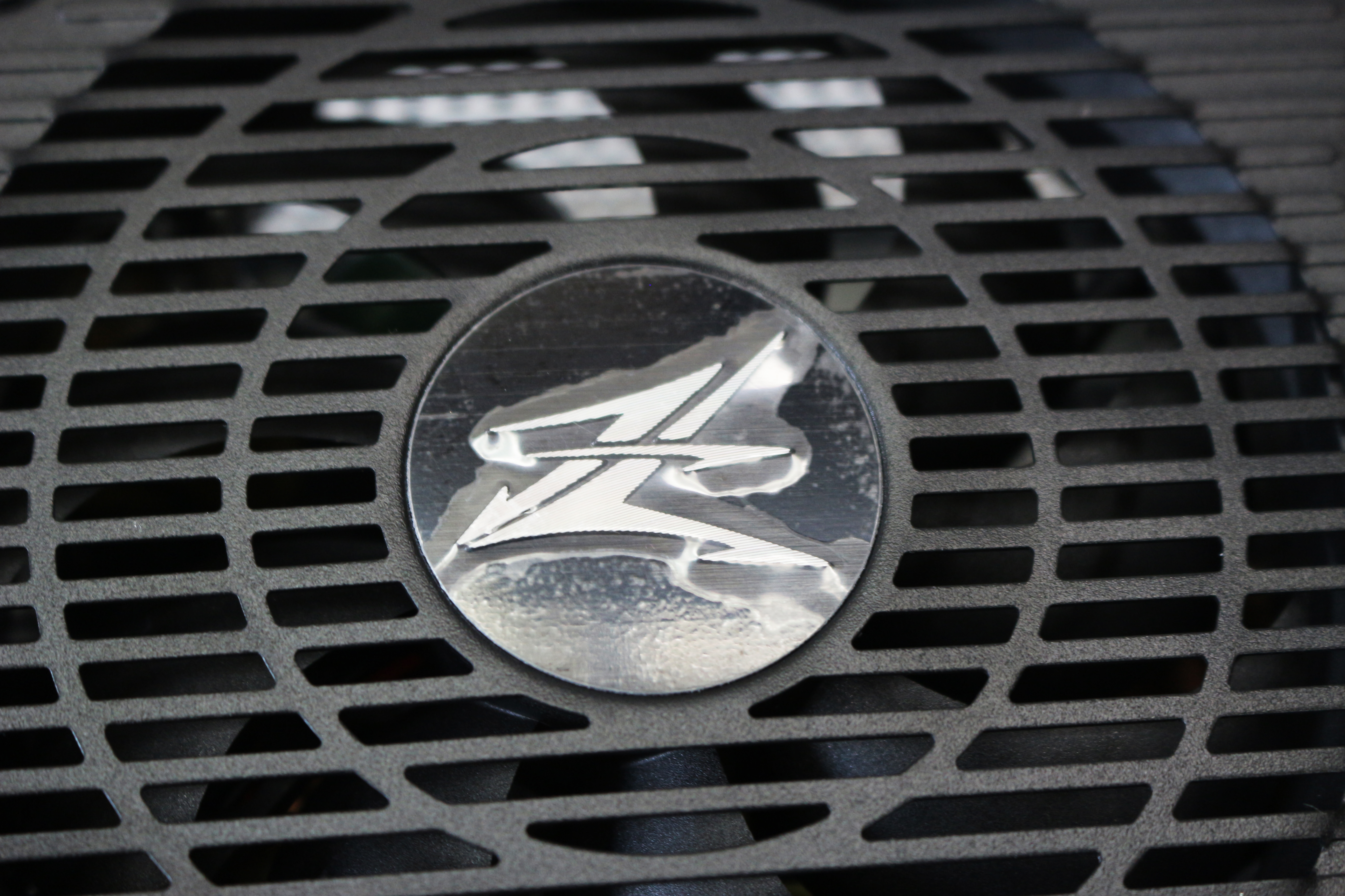 에어홀은 파워 일체형으로 저렴한 제품이라기보단 고급 파워의 느낌이 많이 납니다. 팬이 있는 에어홀 중앙에는 잘만의 이니셜인 보이는 Z가 있는데요, 필름을 안떼고 찍어서 이쁘게 나오지 않았지만 필름을 떼면 메탈 느낌이 고급스러움을 더해줄 것 같네요.