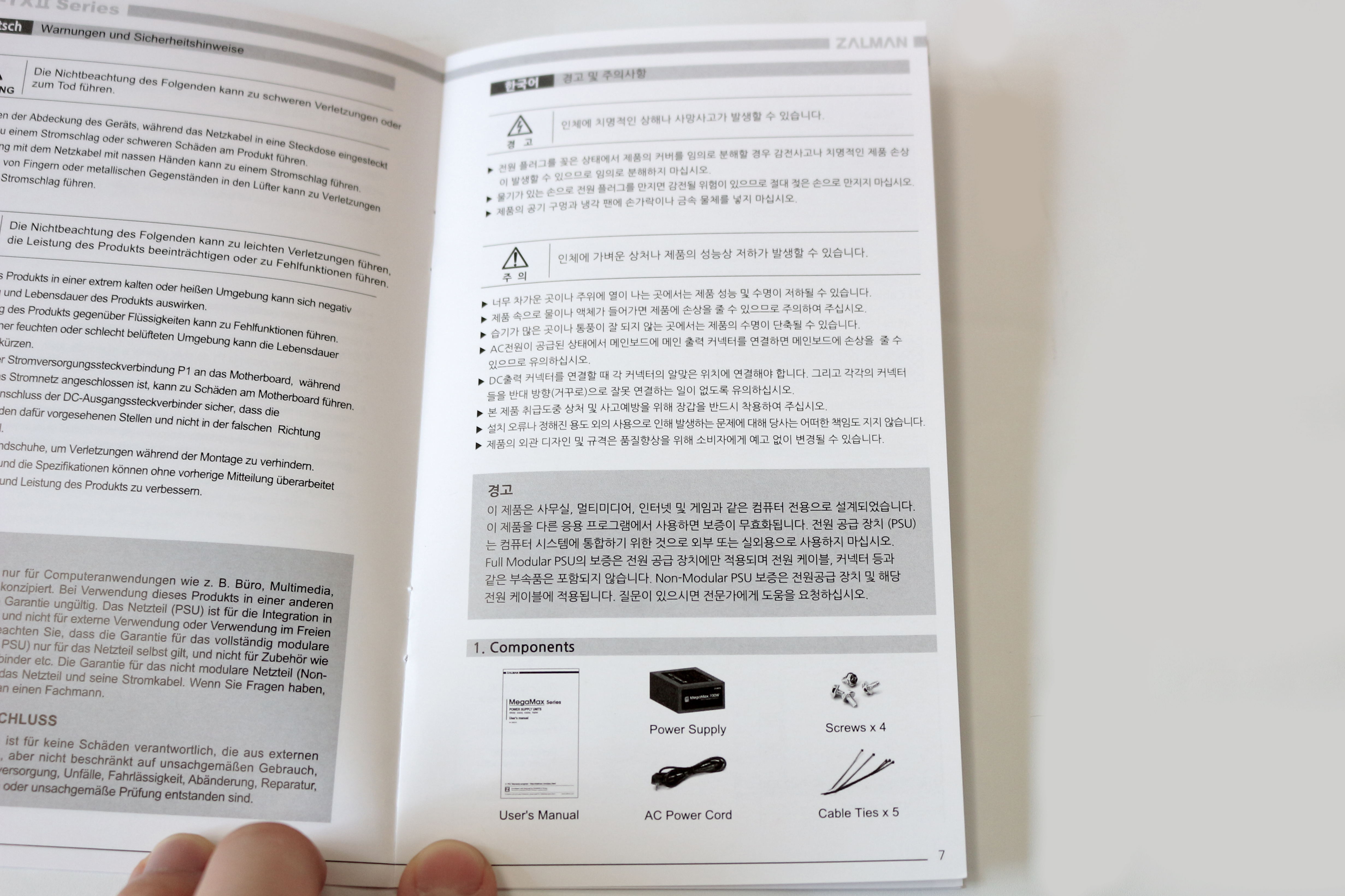 설명서는 여러가지 언어로 적혀있는데, 한국어도 포함되어 있습니다.