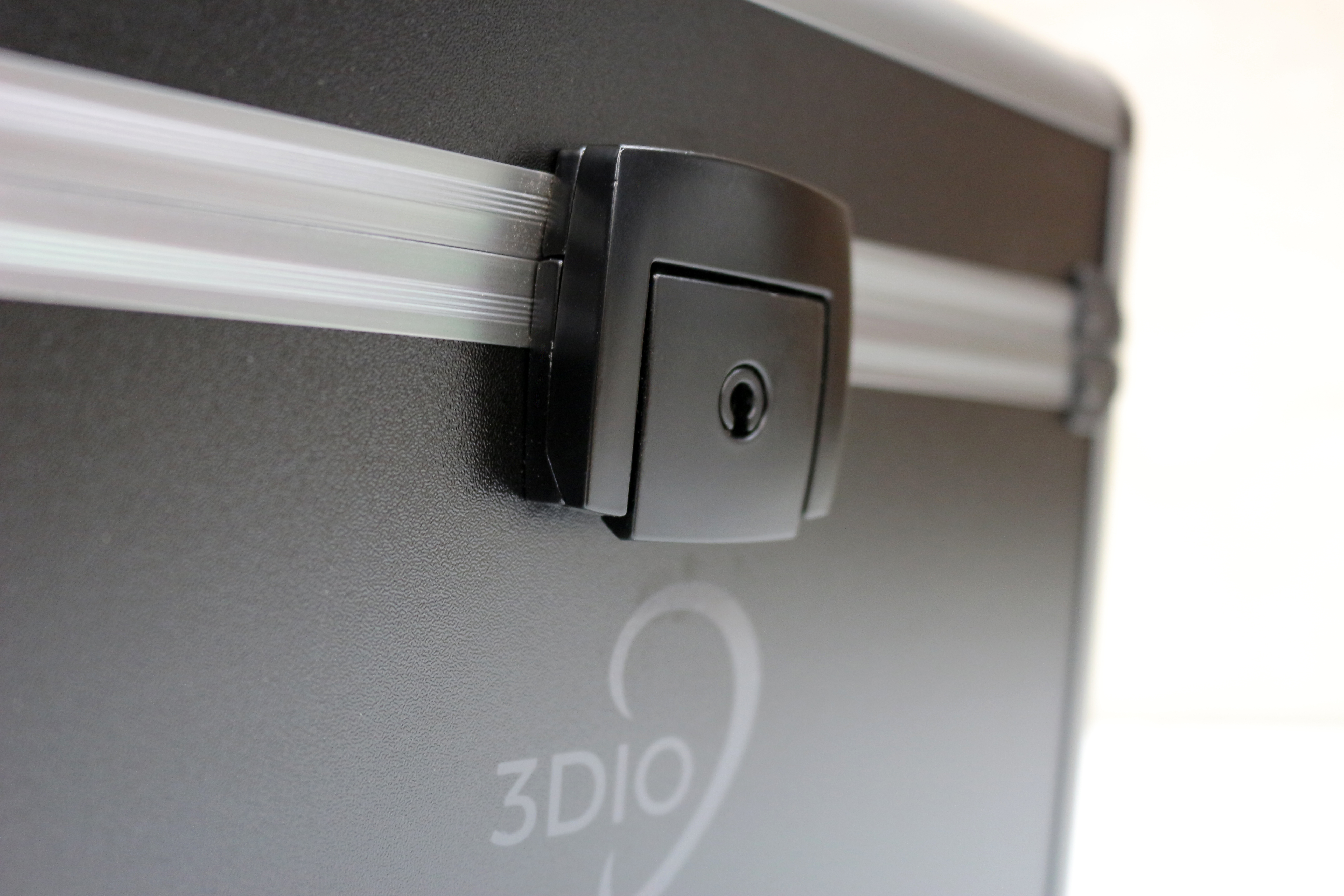 정면에는 잠금장치처럼 보이는게 있는데, 잠금장치에 열쇠 구멍까지 있습니다. 그 아래에는 3DIO의 로고인 사람의 귀모양과 3DIO가 적혀있습니다.