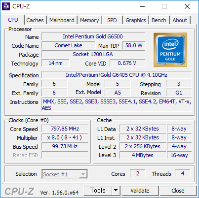 CPU는 코멧레이크 리프레시 펜티엄 G6405입니다.