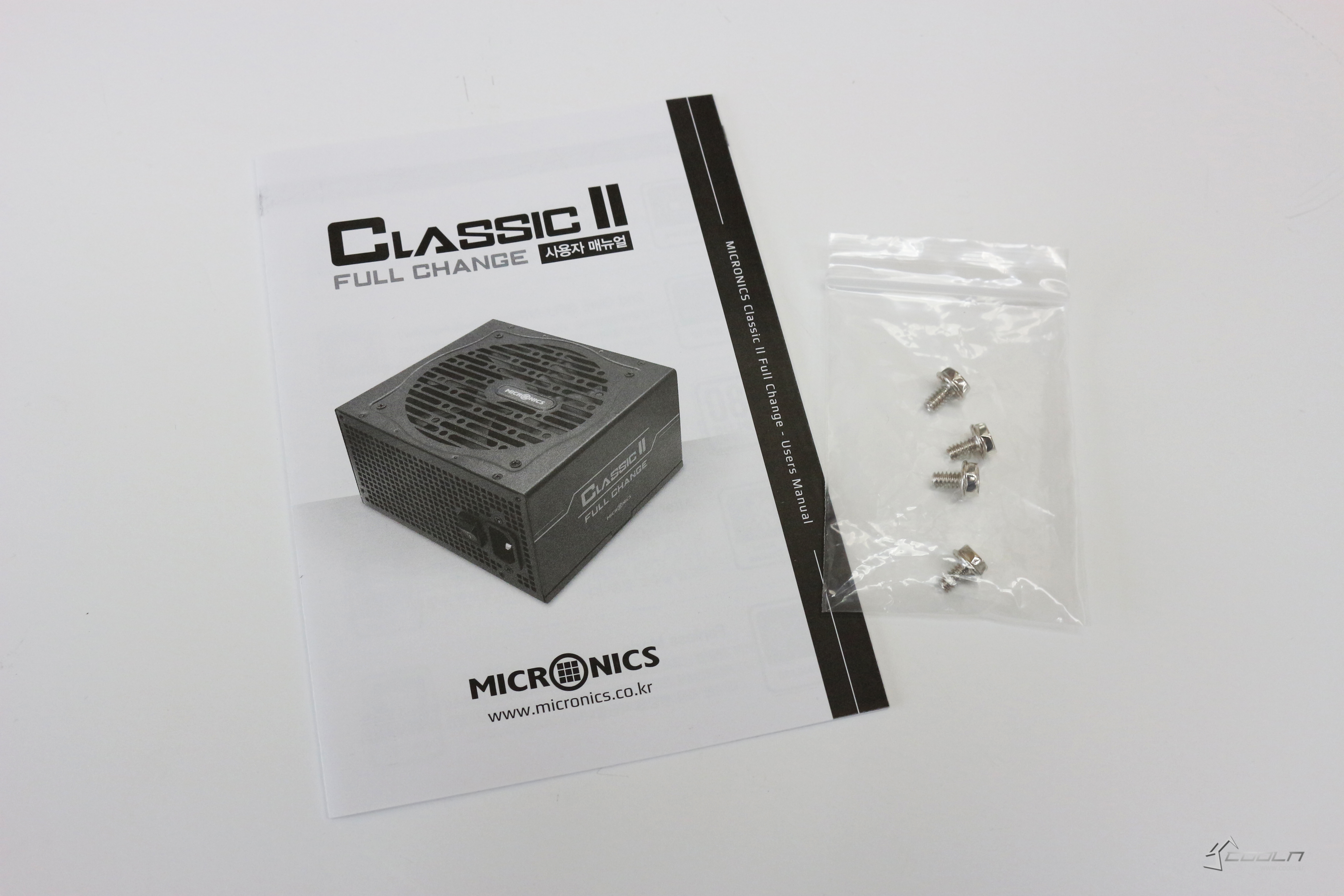 박스를 열면 파워 본체와 설명서가 보입니다. 구성품은 상당히 심플한데 설명서와 나사가 끝입니다. 개인적으로 케이블타이도 조금만 넣어줬으면 하는 아쉬움이 있네요. 설명서는 친절하게 한글로 되어있습니다. 재밌는건 불량 여부 확인 방법이나 시리얼번호의 제조년월 확인 방법 등 설명서에서 흔히 볼 수 없는 것들이 적혀있다는 건데요, 이런 점들을 보면 상당히 신경을 많이 쓴 제품인 것 같습니다. 게다가 파워 소비층을 정확하게 타게팅했다는 생각도 드네요.