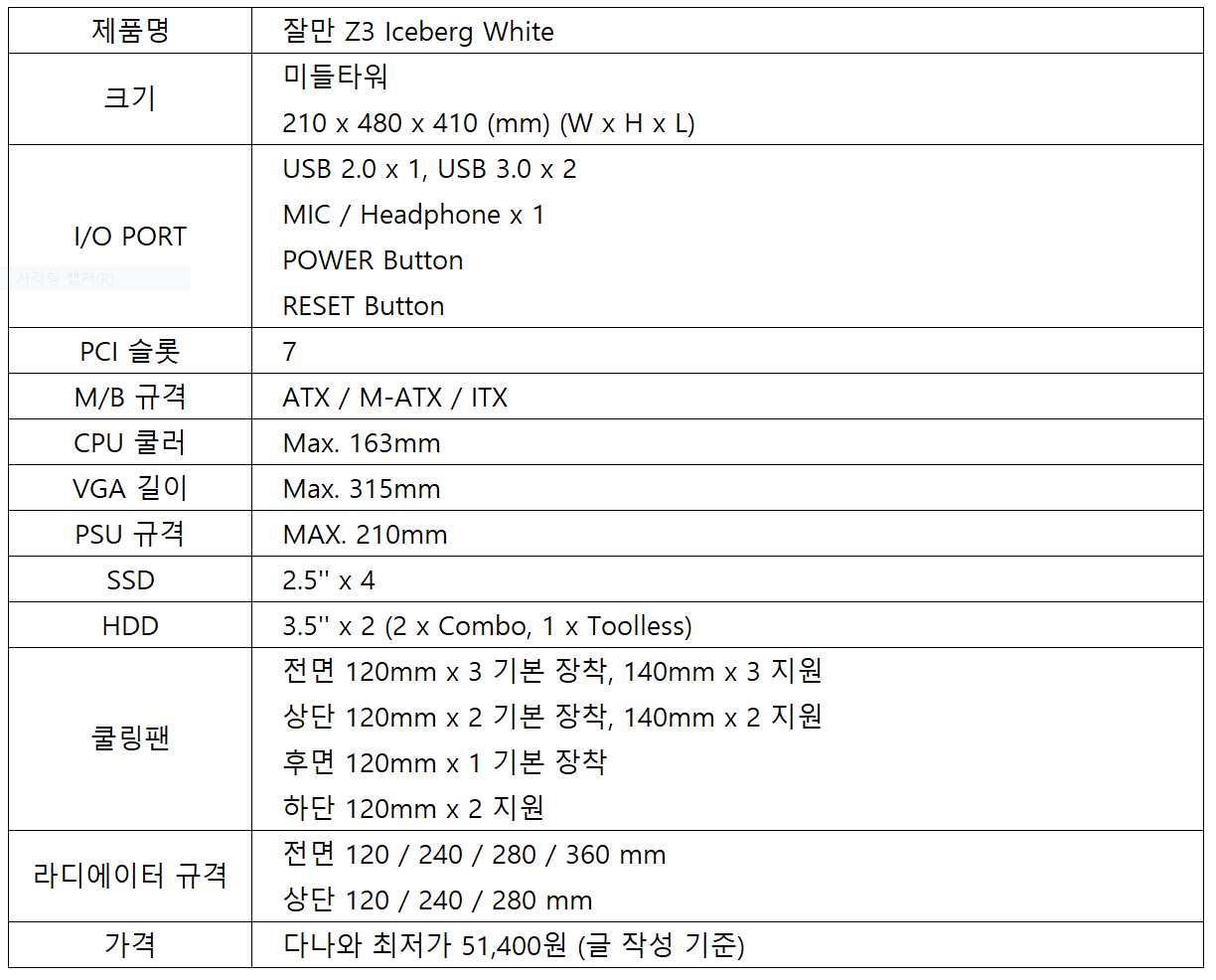 잘만 Z3 아이스버그는 아래 링크에서 구입 가능합니다.