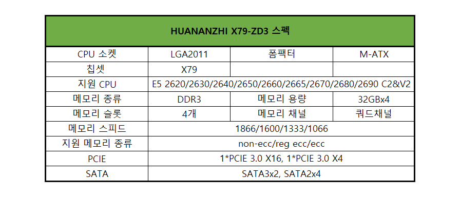 블프 때 구매한 알리발 제온용 메인보드 HUANANZHI사의 X79보드 X79-ZD3 입니다. X79 칩셋이므로 LGA2011소켓에 샌디브릿지 기반의 제온과 아이비브릿지 기반의 제온이 호환됩니다.
