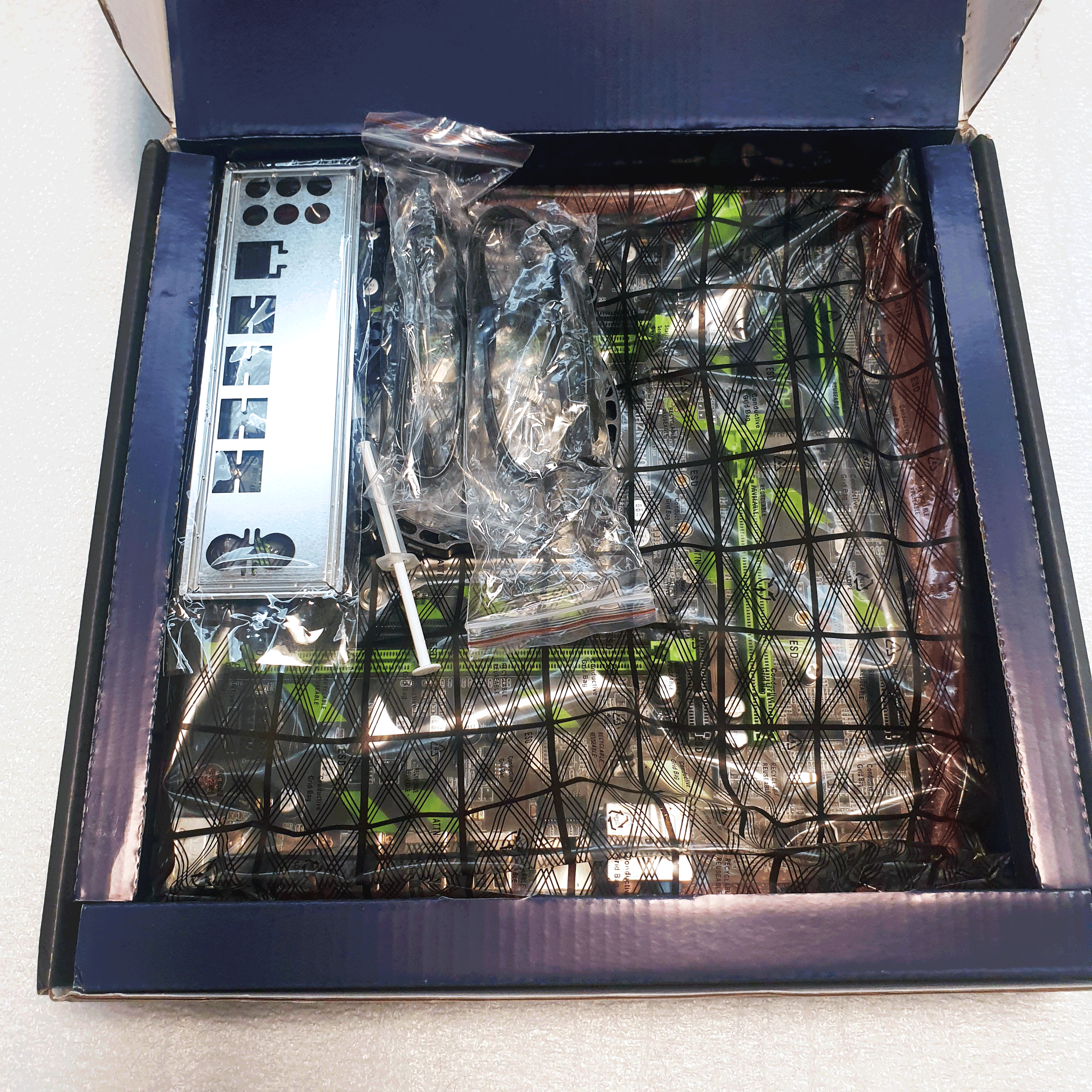 박스를 열면 메인보드 본품과 I/O패널 등 몇가지 구성품이 보입니다.