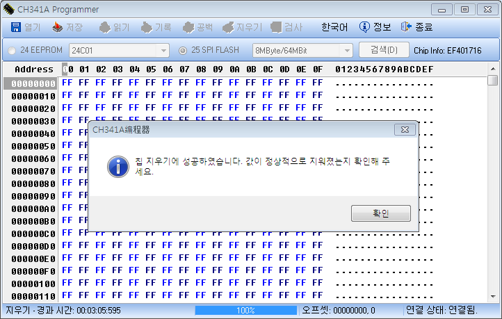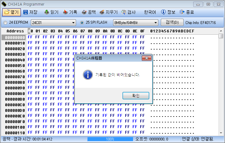 칩 지우기가 끝나면 공백을 눌러 제대로 지워졌는지 확인해줍시다. 위와 같은 창이 뜨면 제대로 지워진겁니다.